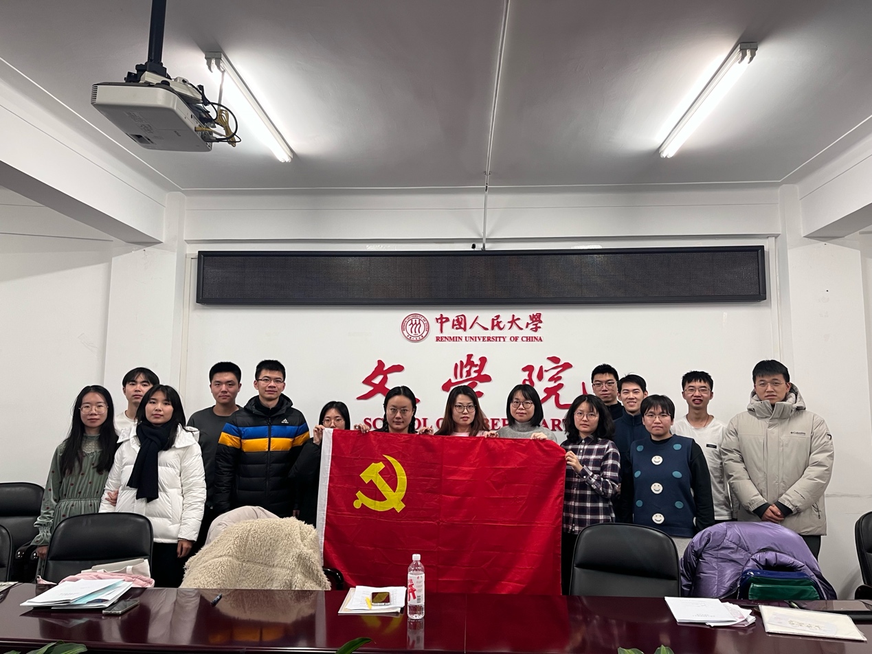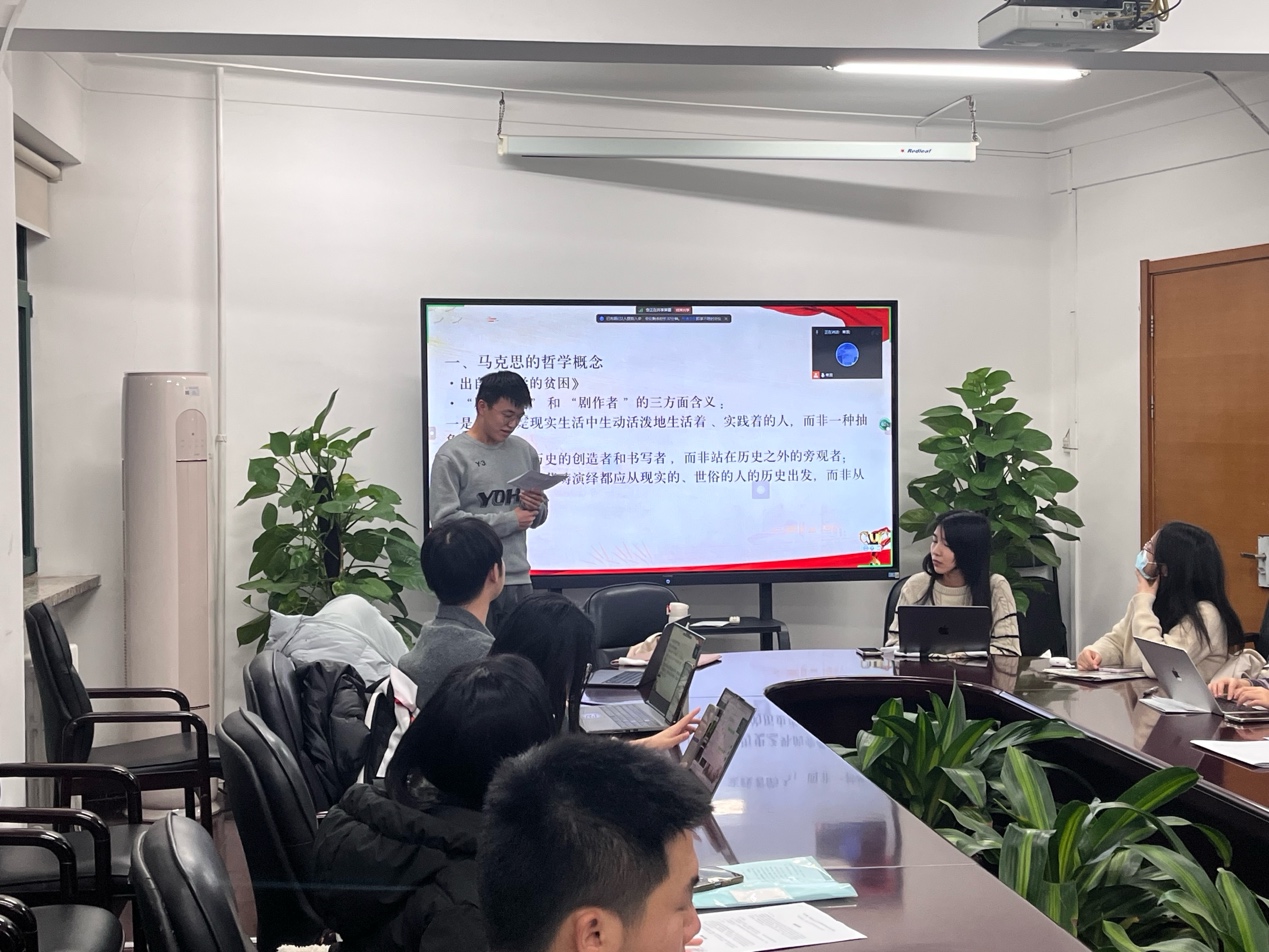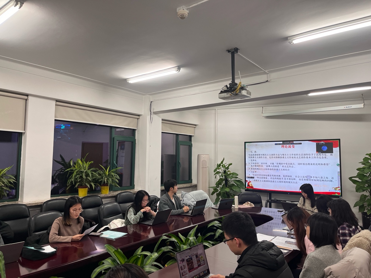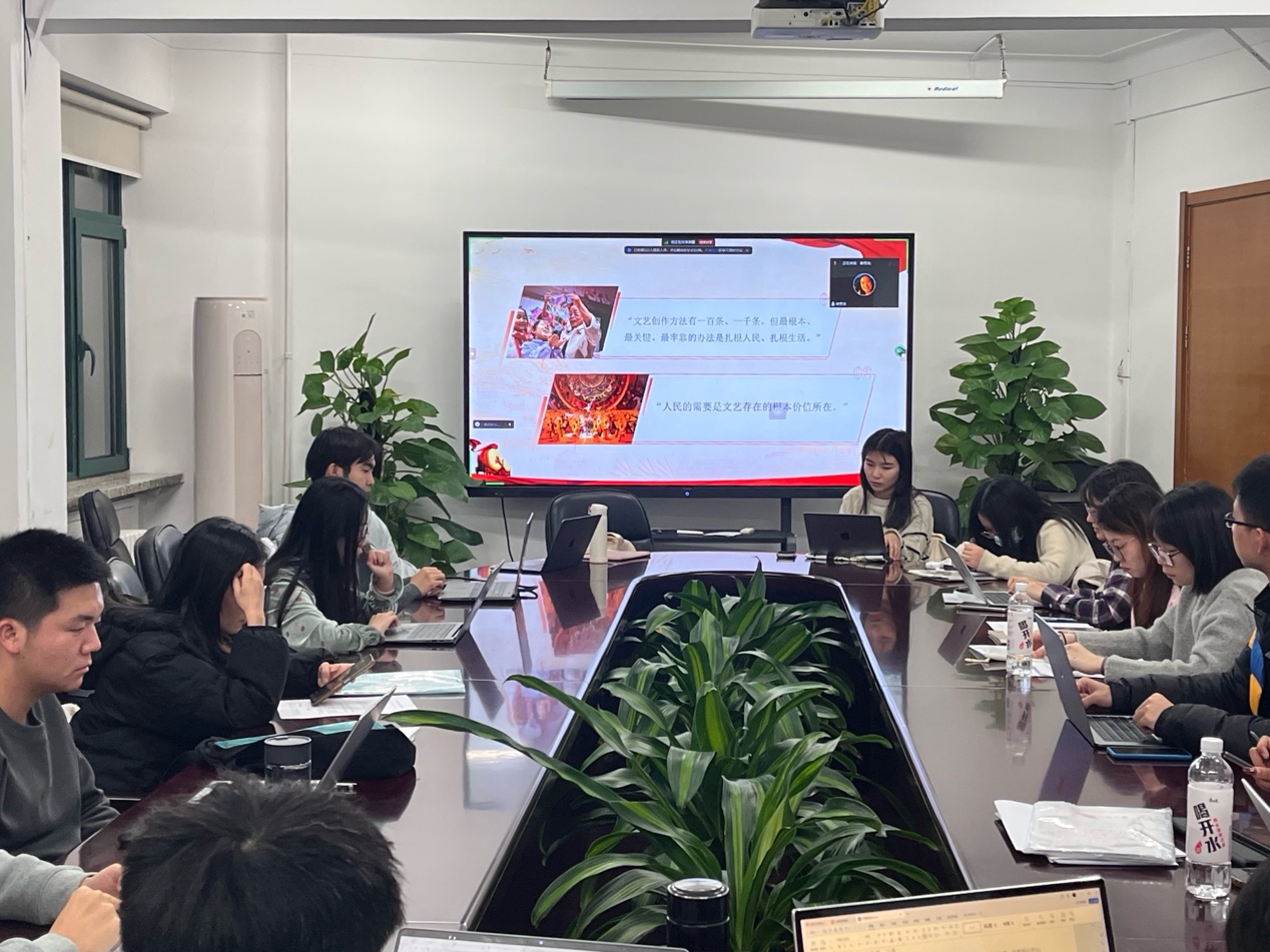 2024年12月14日,文学院2023级硕士一班党团支部在人文楼700召开主题联学活动,活动以“马克思主义文艺思想的中国化与时代化”为主题。本次主题联学活动主要从“人民史诗”“中国精神”“‘剧中人’和‘剧作者’”“现实主义精神和浪漫主义情怀”四个角度梳理马克思主义文艺思想的中国化与时代化进程,由党支部组织委员何炎峰同学主持,支部党员、入党积极分子、共青团员积极参与。