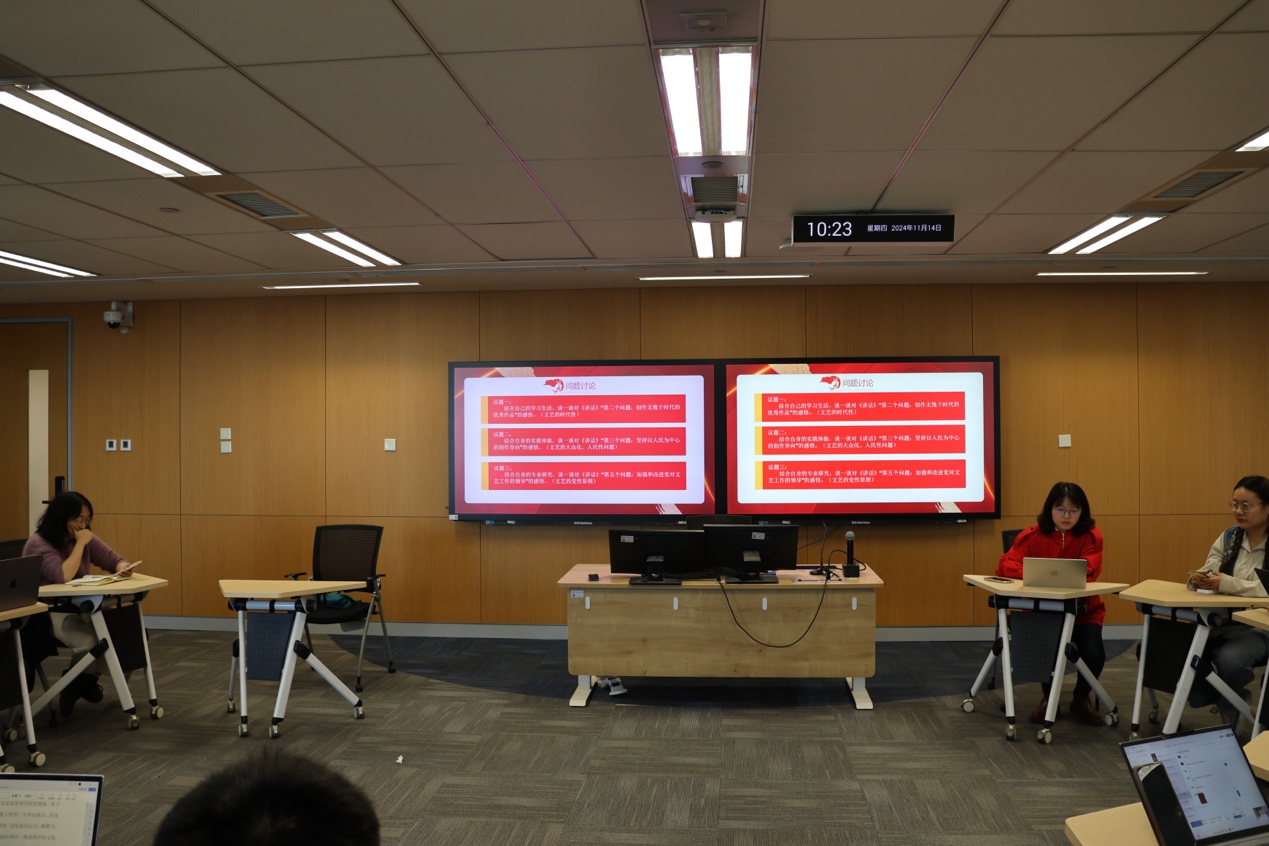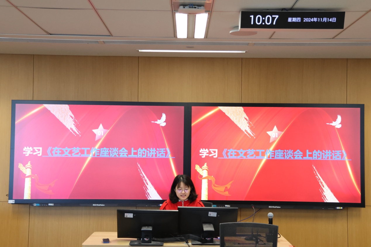 为深入学习贯彻习近平总书记在文艺工作座谈会上的重要讲话精神、习近平文化思想,引领支部党员同志坚定文化自信,自觉投身社会主义文化强国建设,全面提升党性修养,2024年11月14日,2023级硕士一班党支部以“数往知来担使命,学思践悟谱新篇”为主题召开党日活动。支部党员共同学习习近平总书记在文艺工作座谈会上的讲话精神,回顾总结2024年的学习实践,围绕三个议题踊跃发言,气氛热烈。本次党日活动由党支部书记邓可主持,全体支部党员参加。“1+1”制度联系指导教师罗观出席,并做总结发言。