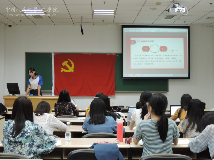 2018年5月27日晚,文学院2016级硕士1班党支部于明德新闻楼0201召开组织生活会,支部党员、入党积极分子、发展对象均参加了此次会议。会议内容分为三项:宣传委员袁闪闪同志带领大家学习《习总书记在北京大学师生座谈会上的讲话》、选拔第32期校党校发展对象培训班参训学员、接收第31期发展对象培训班结业的同志为预备党员。