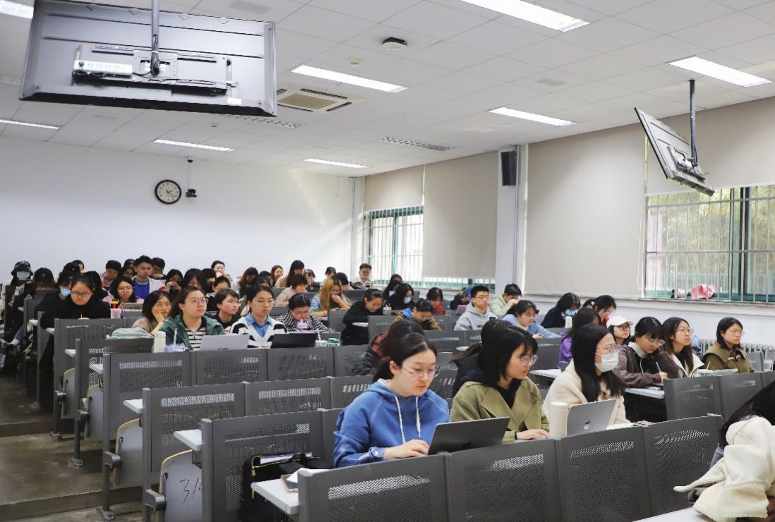 立足文学院的学科特色,颜梅结合“二十大报告”、习近平文化思想的提出与习近平总书记在“文化传承发展座谈会”上的讲话,激励同学们勇担使命,砥砺前行。以文学院党委近期开展的中国国家版本馆参观活动为例,颜梅着重阐释了作为人文学子如何在新的历史起点上继续推动文化繁荣、建设文化强国、建设中华民族现代文明这一命题。她指出,文院学子应进一步加深对“红色基因”的理解,发挥学科特色,切实做到把马克思主义基本原理同中华优秀传统文化相结合,在专业学习中推动中华优秀传统文化创造性转化和创新性发展。