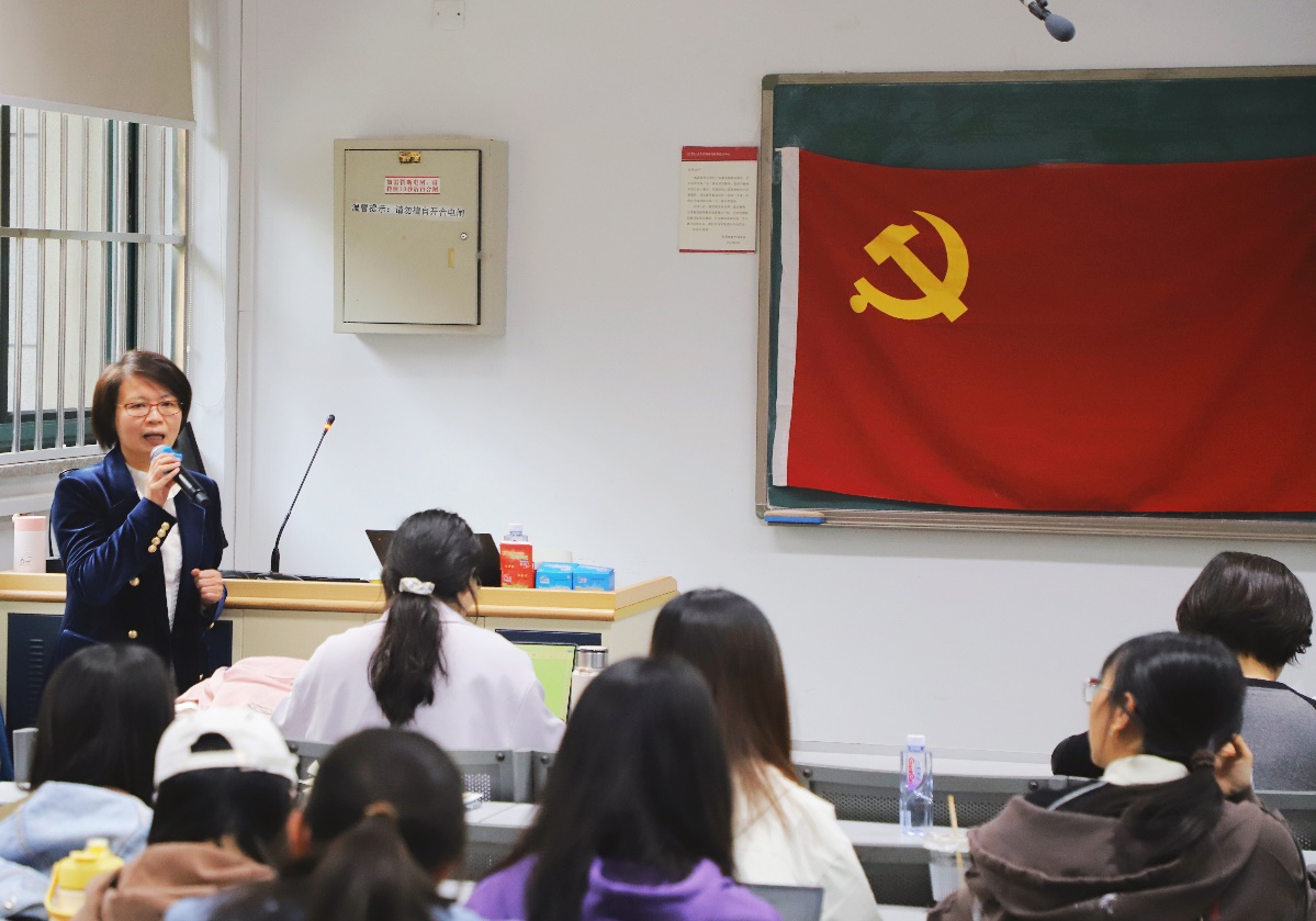 4月3日下午,文学院党委第20期入党积极分子培训班首场党课在公共教学三楼3103教室开讲。文学院党委书记颜梅讲授题为“用红色基因铸就独树一帜的一流人文学科”的主题党课,院长兼党委副书记陈剑澜、学院教师代表以及本期培训班学员到场参加。本次党课由文学院党委副书记、纪委书记康凤主持。