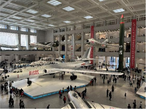 随后,同学们走进“新时代国防和军队建设成就展”,歼-20战斗机模型、山东舰航母模型等展品前人头攒动。大家驻足凝视,认真聆听讲解,详细了解我国在隐身战机、航空母舰、新型导弹等领域的突破成果,当得知这些装备均为自主研发、达到世界先进水平时,现场响起阵阵赞叹,自豪感与使命感在同学们心中油然而生。